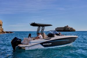 Activ 605 Open е создаден за да воодушевува. Може да прими до 7 лица за целодневна забава и уживање. Чамецот е дизајниран со посебен фокус на удобност, ергономија и функционалност, претворајќи ја палубата во совршено место за релаксација или риболов. Mercury мотор со моќност до 150 КС обезбедува безбедна и стабилна пловидба, а богатата листа на дополнителна опрема нуди уште повеќе забава и уживање на вода.